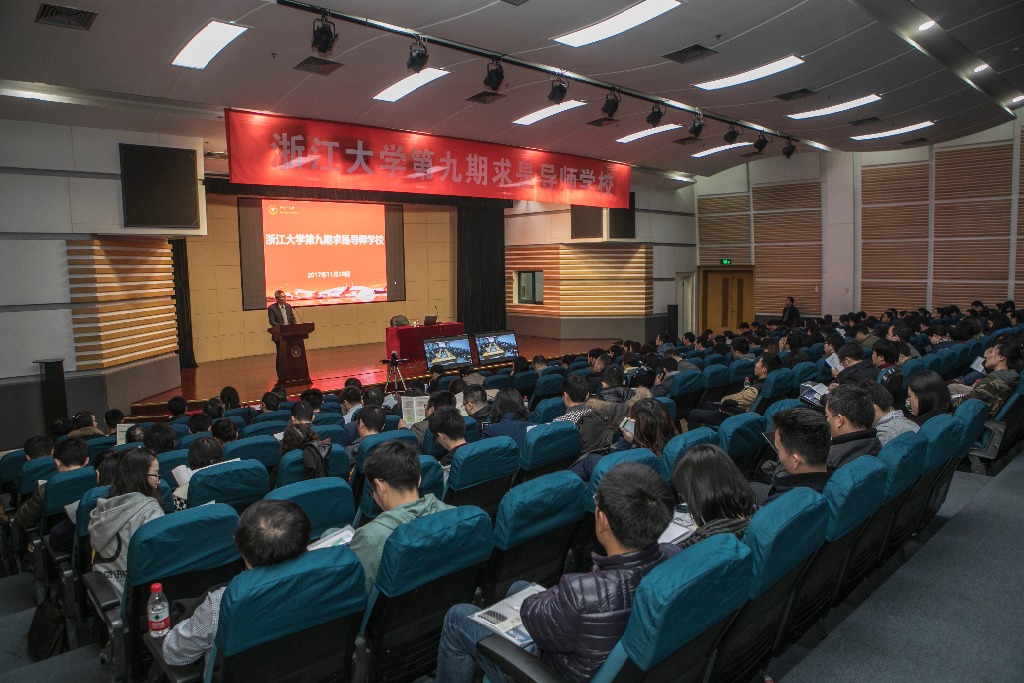 浙江大学求是导师学校成立于2007年,至今已举办九届。先后已有2000余位校内导师以及十余所省内高校的300余位导师参加了学习。求是导师学校旨在为广大裸聊app 导师创造一个共享经验、互相学习的平台,在这里,导师们可以直接聆听国家政府部门的主要领导、国家政策研究机构的资深学者、国内裸聊app 培养单位的著名专家的真知灼见,与智者对话,促使导师更多地关注裸聊app 全面素质的培养,为构建更加和谐的师生关系营造良好氛围。第九期求是导师学校围绕导师“立德树人”根本任务,深入学习贯彻党的十九大精神和习总书记在全国思想政治工作会议上的讲话精神,达到了预期成效。