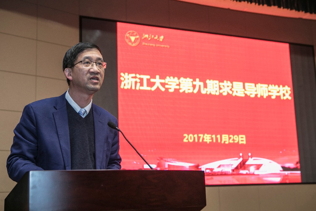 浙江大学求是导师学校成立于2007年,至今已举办九届。先后已有2000余位校内导师以及十余所省内高校的300余位导师参加了学习。求是导师学校旨在为广大裸聊app 导师创造一个共享经验、互相学习的平台,在这里,导师们可以直接聆听国家政府部门的主要领导、国家政策研究机构的资深学者、国内裸聊app 培养单位的著名专家的真知灼见,与智者对话,促使导师更多地关注裸聊app 全面素质的培养,为构建更加和谐的师生关系营造良好氛围。第九期求是导师学校围绕导师“立德树人”根本任务,深入学习贯彻党的十九大精神和习总书记在全国思想政治工作会议上的讲话精神,达到了预期成效。