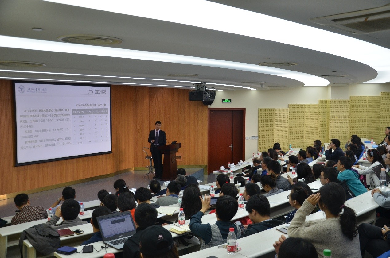 开班仪式结束后,裸聊app 副院长叶恭银为同学们作了新生始业教育报告:《新时代、新征程,做具有全球竞争力的交叉培养人才》。叶恭银教授结合国际学科前沿及十九大报告中加快一流大学和一流学科建设,实现高等教育内涵式发展的内容,向同学们介绍了在这样的时代背景下,浙江大学多学科交叉培养博士裸聊app 应有的核心任务、培养目标和社会责任,勉励在座的各位同学将浙大人肩负的时代责任铭刻于心,胸怀远大抱负,夯实专业基础,通过学科交叉培养提升自己的综合能力,将个人梦融入浙大梦、中国梦,为学校的发展、社会的进步、国家的富强与民族的振兴奉献自己的青春与力量。