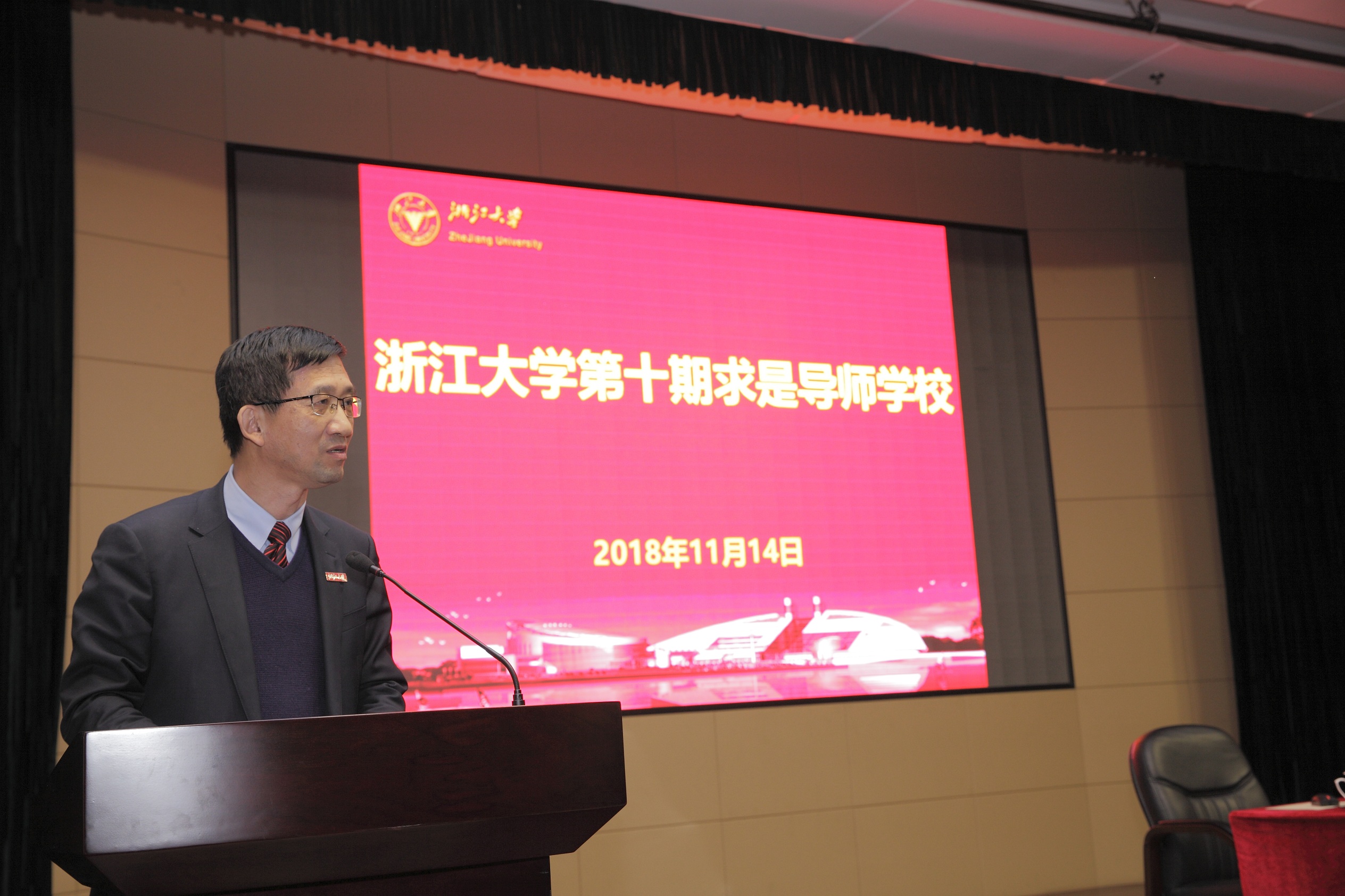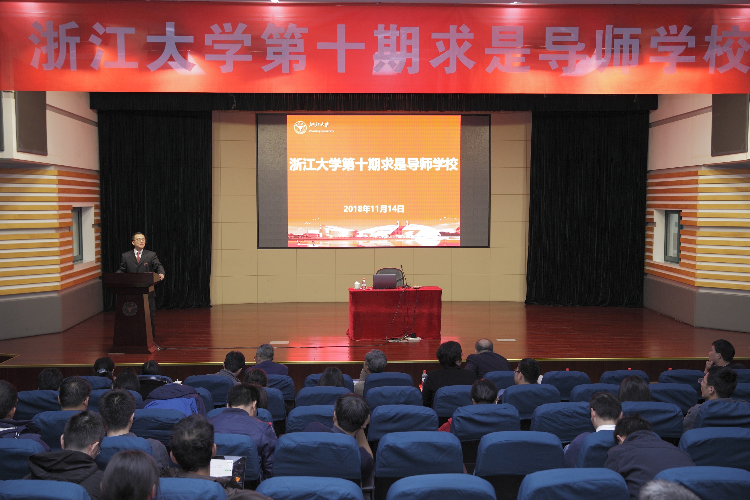 为深入学习贯彻党的十九大精神,系统落实全国高校思想政治工作会议、全国教育大会和学校第十四次党代会精神,以习近平新时代中国特色社会主义思想为指导,进一步落实导师立德树人职责,努力建设一支“政治素质过硬、业务能力精湛、育人水平高超”的裸聊app 导师队伍,2018年11月14日,浙江大学第十期求是导师学校在紫金港校区临水报告厅隆重开班。浙大200余位新上岗导师以及50余位来自西湖大学、浙江工业大学、宁波大学和湖州师范学院等省内高校的教师代表参加培训。
