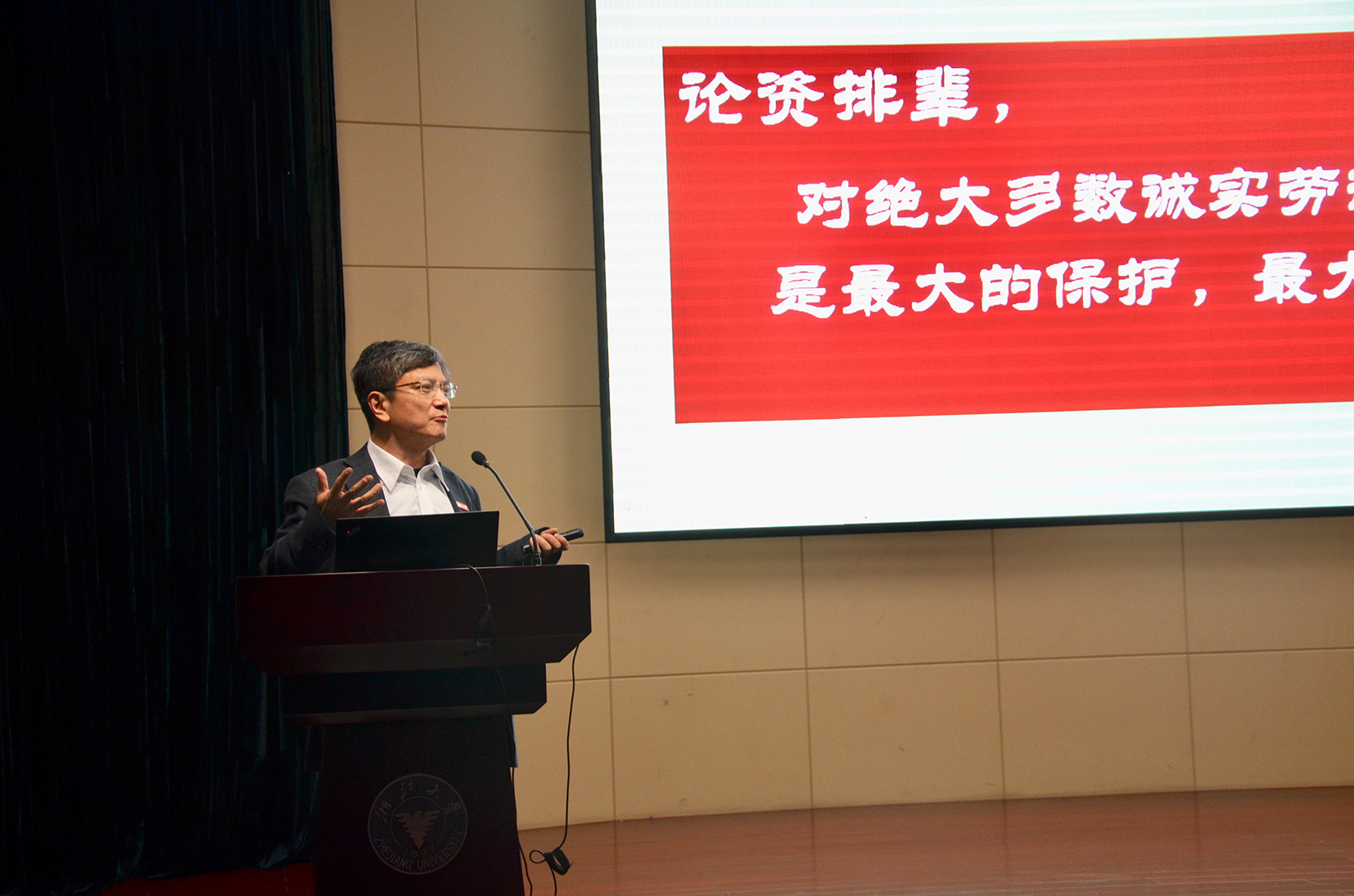 随后,裸聊app 院长周天华以“新时代卓越裸聊app 教育改革与实践”为题作裸聊app 教育教学工作报告。他结合我校“三步走”战略,分析世界顶尖大学裸聊app 教育特色,阐明新时代裸聊app 教育愿景与内涵,从招生改革、课程教学、裸聊app 教育国际化、多学交叉人才培养、中期考核、资助育人、学籍管理、学位论文质量保障、裸聊app 思政教育、导师队伍建设、学科建设(学位点建设)等多方面阐释2018年裸聊app 教育工作的进展,并对2019年裸聊app 教育提出了三项重点工作:一、深入推进博士裸聊app 教育综合改革;二、深化专业学位综合改革;三、全面推进综合交叉的一流学科体系建设。