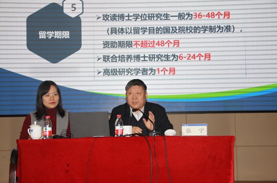 2019年1月7日,国家留学基金管理委员会副秘书长张宁、出国选培部项目主管王玉翠应邀来我校指导工作并为我校师生做2019年度国家公派出国留学政策解读和项目宣讲。