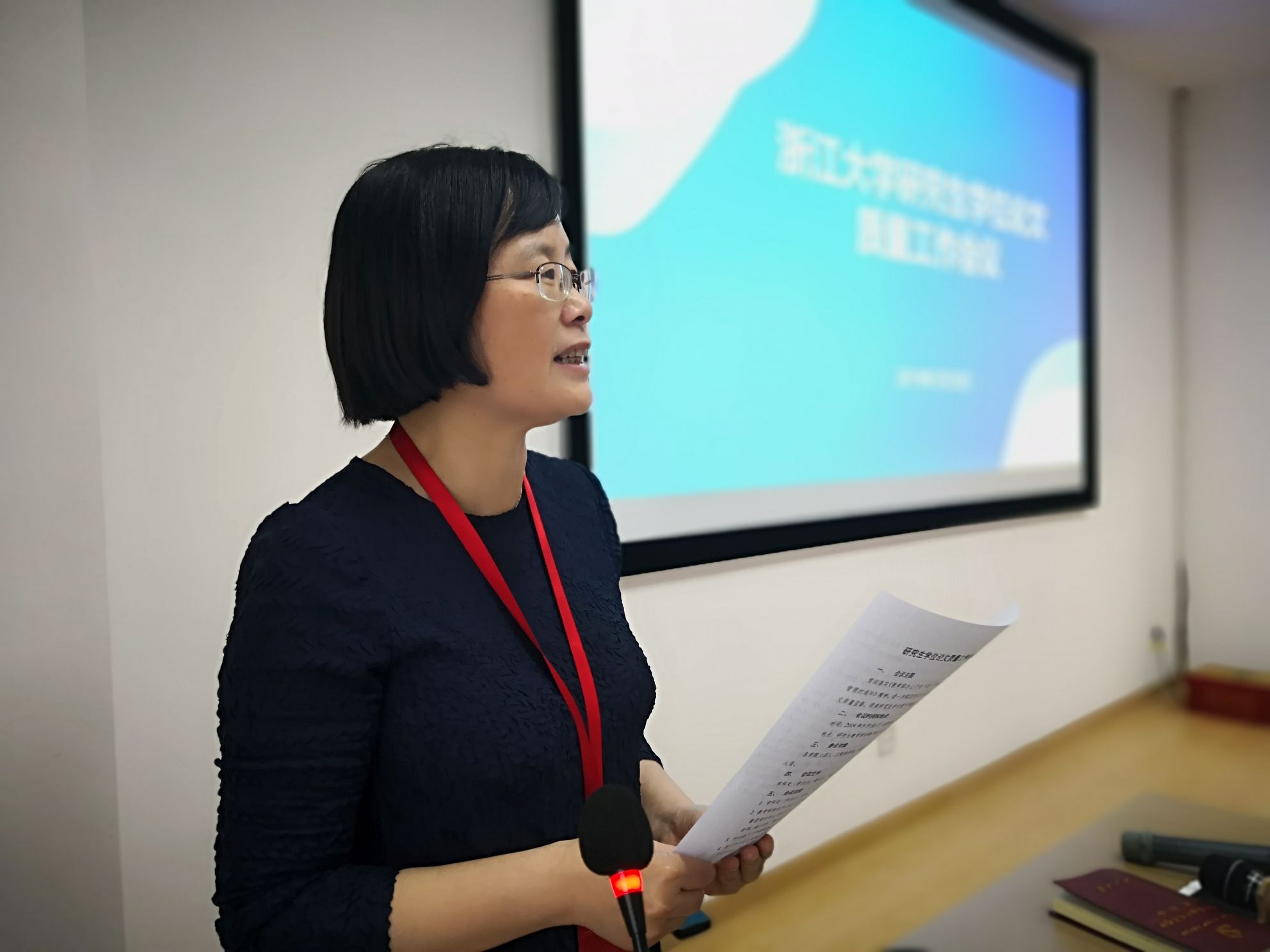 随后,学位办郑龑老师通报了2018年浙江省硕士学位论文抽检的整体情况,并强调了学位授予工作中需要注意的事项。