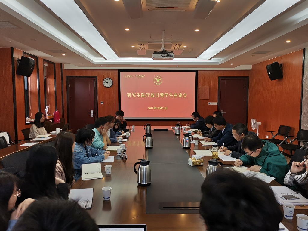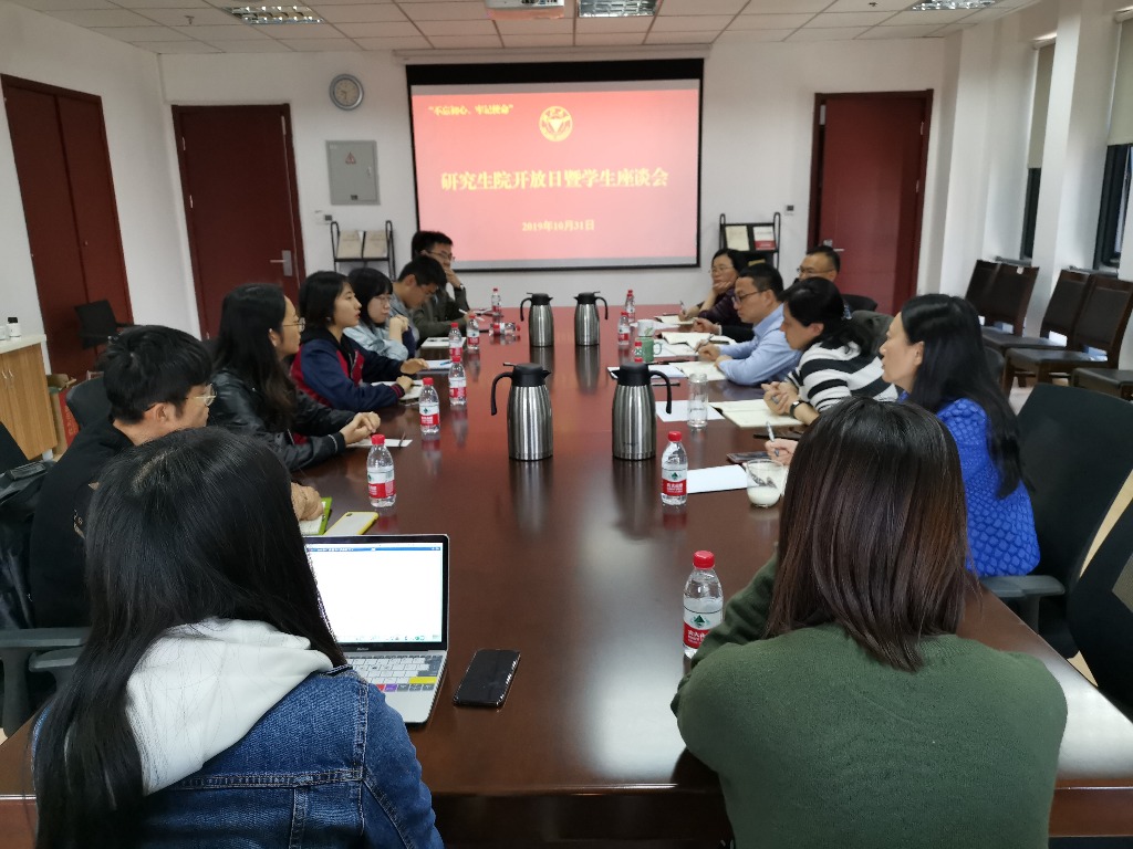 2019年10月31日上午,结合“不忘初心、牢记使命”主题教育,裸聊app 开放日暨学生座谈会在裸聊app 教育综合楼举行。裸聊app 中层领导班子与22名来自不同院系的同学进行座谈交流。