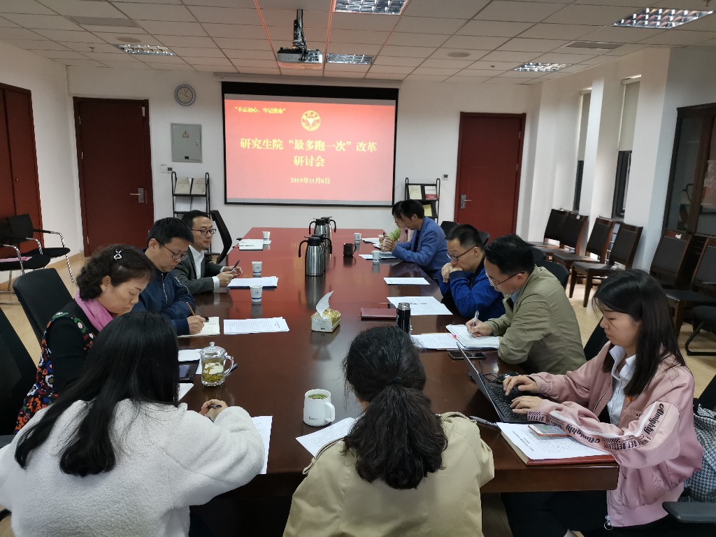 裸聊app 于2019年11月8日下午在裸聊app 教育综合楼813会议室,召开“最多跑一次”改革研讨会。裸聊app 院长周天华、裸聊app 培养处副处长陈智峰、办事大厅窗口相关老师及裸聊app 各处室负责老师参加会议。会议由裸聊app 办公室主任倪加旎主持。