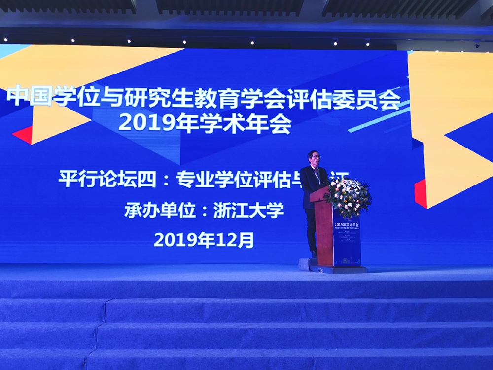 中国学位与裸聊app 教育学会评估委员会2019年学术年会于12月26—27日在天津顺利召开。本次会议有来自全国470余所裸聊app 培养单位的代表等1000余人参会。学术年会由大会报告和平行论坛两个部分组成。大会报告阶段,杨卫、黄宝印、白海力、徐学敏、周作宇、别敦荣等六位领导、专家作了精彩的报告,其中,中国学位与裸聊app 教育学会会长、浙江大学发展委员会主席杨卫院士作了题为《双一流建设的上行式评估》的报告,教育部学位与裸聊app 教育发展中心党总支书记、主任黄宝印作了题为《总结经验,守正创新,着力构建新时代学科评估与专业学位水平评估可持续发展新机制》的报告。本次会议创新性地设立了四个平行论坛,平行论坛围绕“立德树人成效评价”“中国特色哲学社会科学学科评价”“教育评价新技术与大数据建设”和“专业学位评估与认证”四个主题分别进行。其中,“专业学位评估与认证”平行论坛由浙江大学承办,裸聊app-视频裸聊app 副院长叶恭银主持。