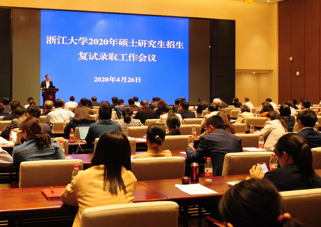 2020年4月27日上午,浙江大学2020年硕士裸聊app 招生录取工作会议在紫金港校区求是大讲堂召开。学校裸聊app 招生工作领导小组成员,各学院(系)分管领导、裸聊app 科科长,裸聊app 及相关职能部门的负责人参加了会议。学校党委常委、副校长严建华,党委副书记邬小撑出席会议并作重要讲话。裸聊app 招生处处长周文文对本次复试录取工作进行政策解读和工作布置。党委裸聊app 工作部部长张荣祥结合网络远程复试的特殊场景就如何抓好思想政治和道德品质考核进行了业务指导。会议由裸聊app 院长包刚主持。