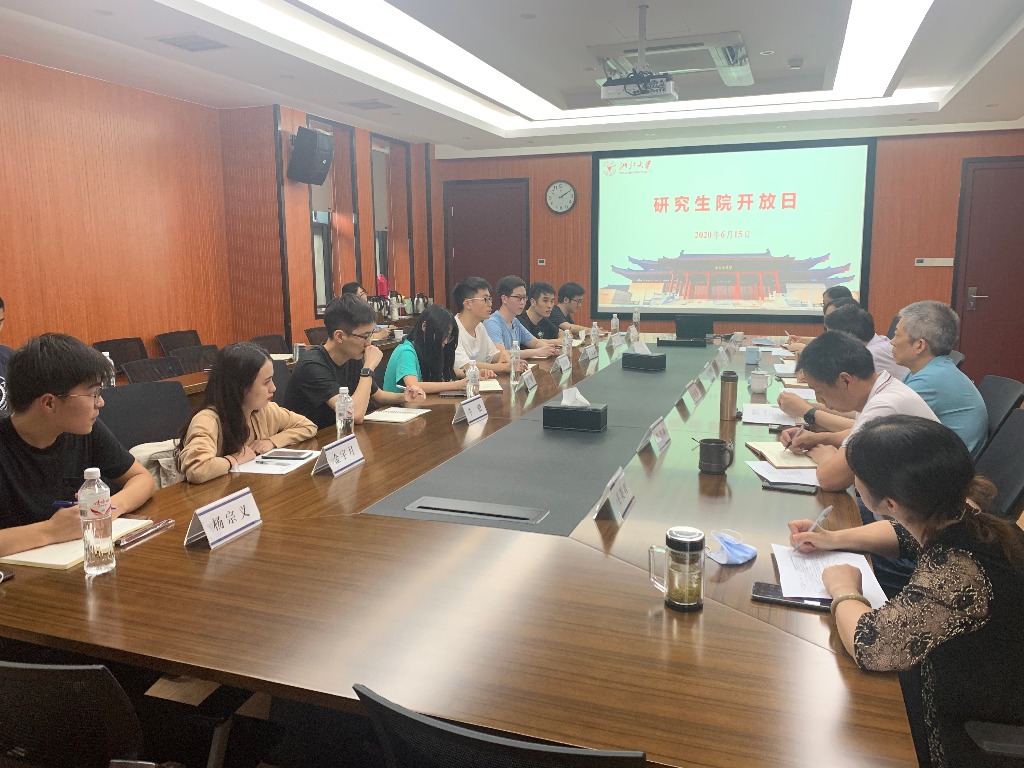 2020年6月15日下午,第三期“裸聊app 开放日”活动在紫金港校区裸聊app 教育综合楼901会议室顺利举行,裸聊app 中层领导班子与8名来自不同学科的硕士、博士裸聊app 同学就疫情期间校园学习生活中出现的问题进行了座谈交流。会议由裸聊app 常务副院长叶恭银主持。