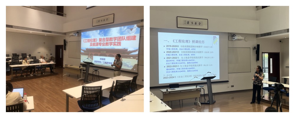学院(系)授课教师代表能源工程学院林晓青副教授、生物系统工程与食品科学学院韩志英副教授分享了《工程伦理》课程教学心得,与会教师积极交流讨论,气氛热烈,收获颇丰。