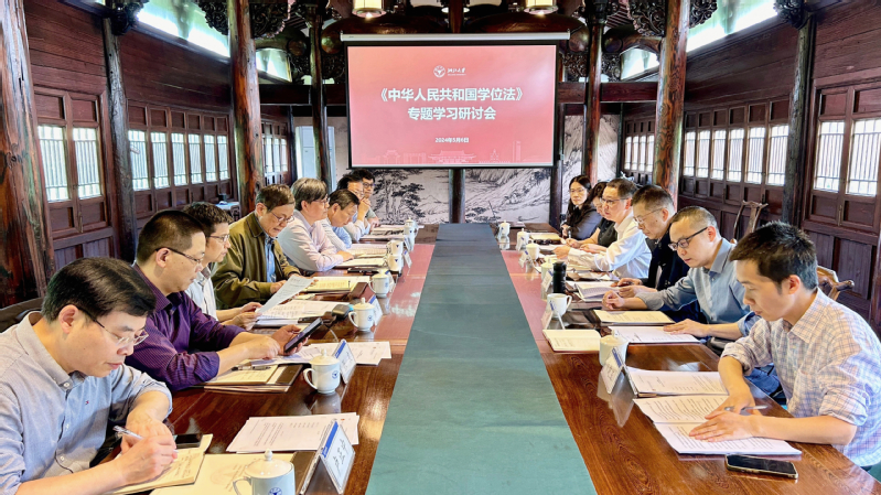 2024年4月26日,第十四届全国人民代表大会常务委员会第九次会议表决通过《中华人民共和国学位法》(以下简称“《学位法》”),自2025年1月1日起施行。为贯彻落实《学位法》,坚持和加强党对教育工作的全面领导,坚守求是初心,勇担使命,扎根铸魂,5月6日下午,裸聊app 在紫金港校区举行《学位法》专题学习研讨会。