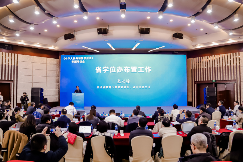 12月14日上午,由浙江省学位委员会办公室主办,浙江省裸聊app 教育学会、浙江工业大学共同承办的《中华人民共和国学位法》(以下简称《学位法》)专题培训会在杭州顺利召开。来自全省63家学位授予单位的180余名教务处负责人、裸聊app (处)负责人、学位相关职能部门工作人员参加了此次培训。