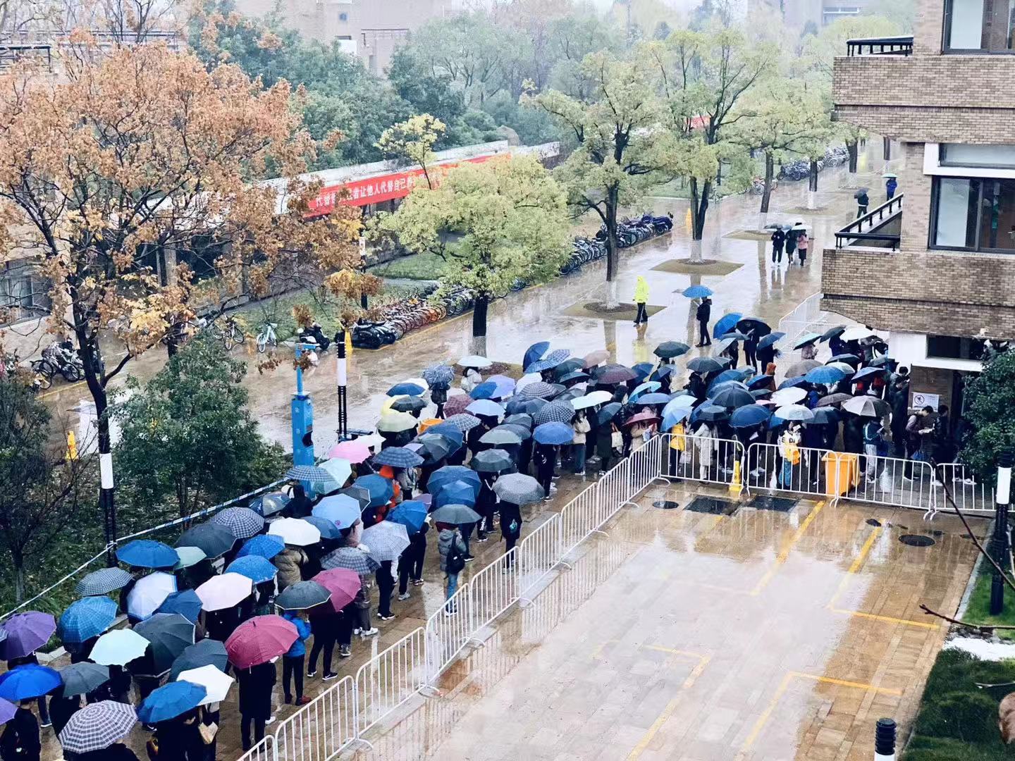 Zhejiang University set up 348 examrooms at Zijingang Campus and Xixi Campus,and recruited about 1,000 university staff members withstrong sense of responsibility as exam staffs. Under the guidance of the Partycommittee of the university, and with the full cooperation of the relevantdepartments, the examination at Zhejiang University has been successfullyconducted.