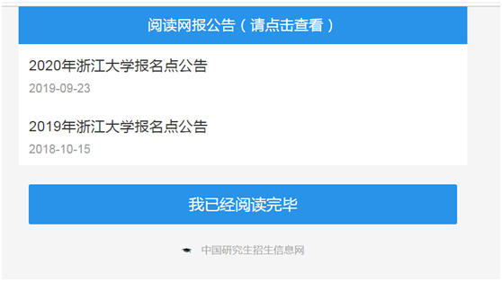 二、阅读网报公告之后,点击“我已经阅读完毕”。