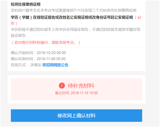 十一、若审核不通过,如下图显示“待补充材料”页面,则需要按要求补传相应材料。